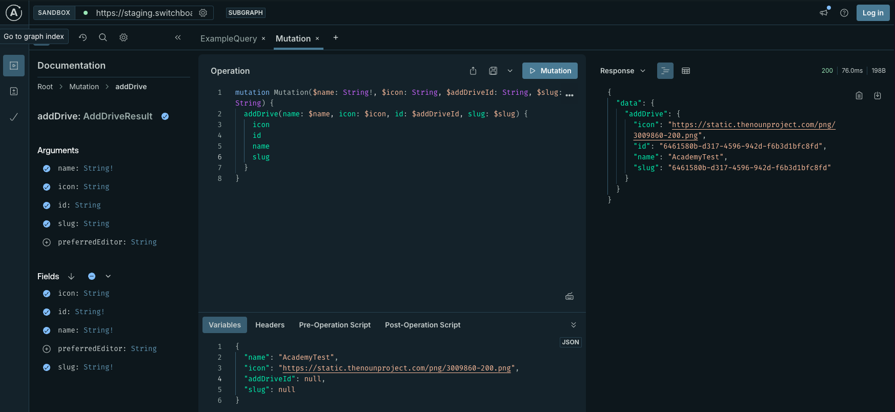 https://staging.switchboard.phd/graphql/system(this is a supergraph gateway. Read more about subgraphs and supergraphs here. - Appropriate permissions to perform mutations.